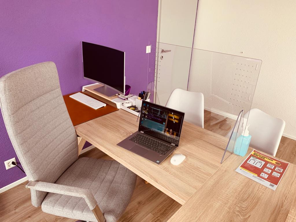 - Der Spuckschutz lässt sich ohne jegliche Eingriffe im bestehenden Mobiliar aufstellen