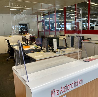 Spuckschutz-System aus Plexiglas/PC – perfekt modulierbar für jeden Kundenschalter und Konferenztisch